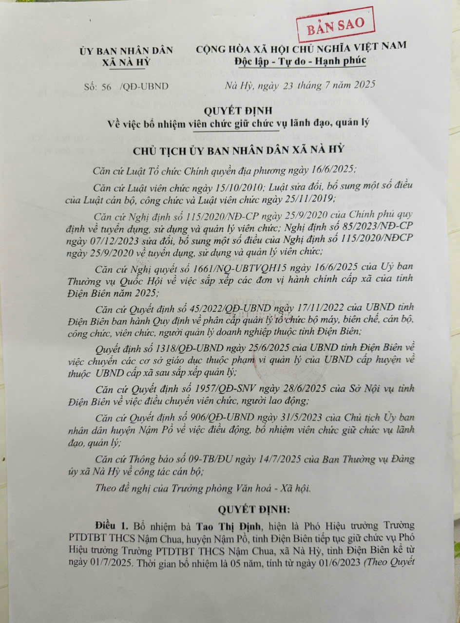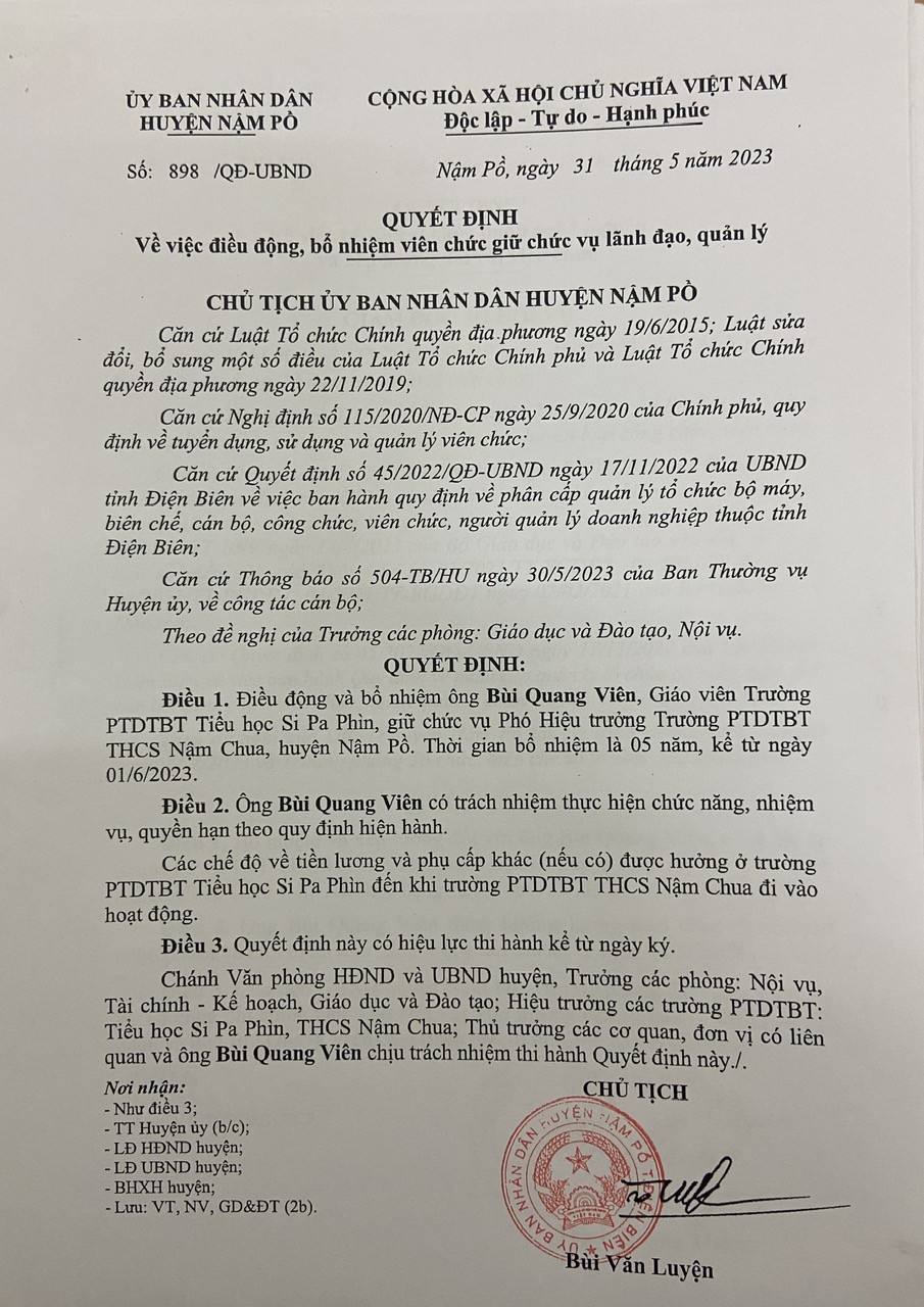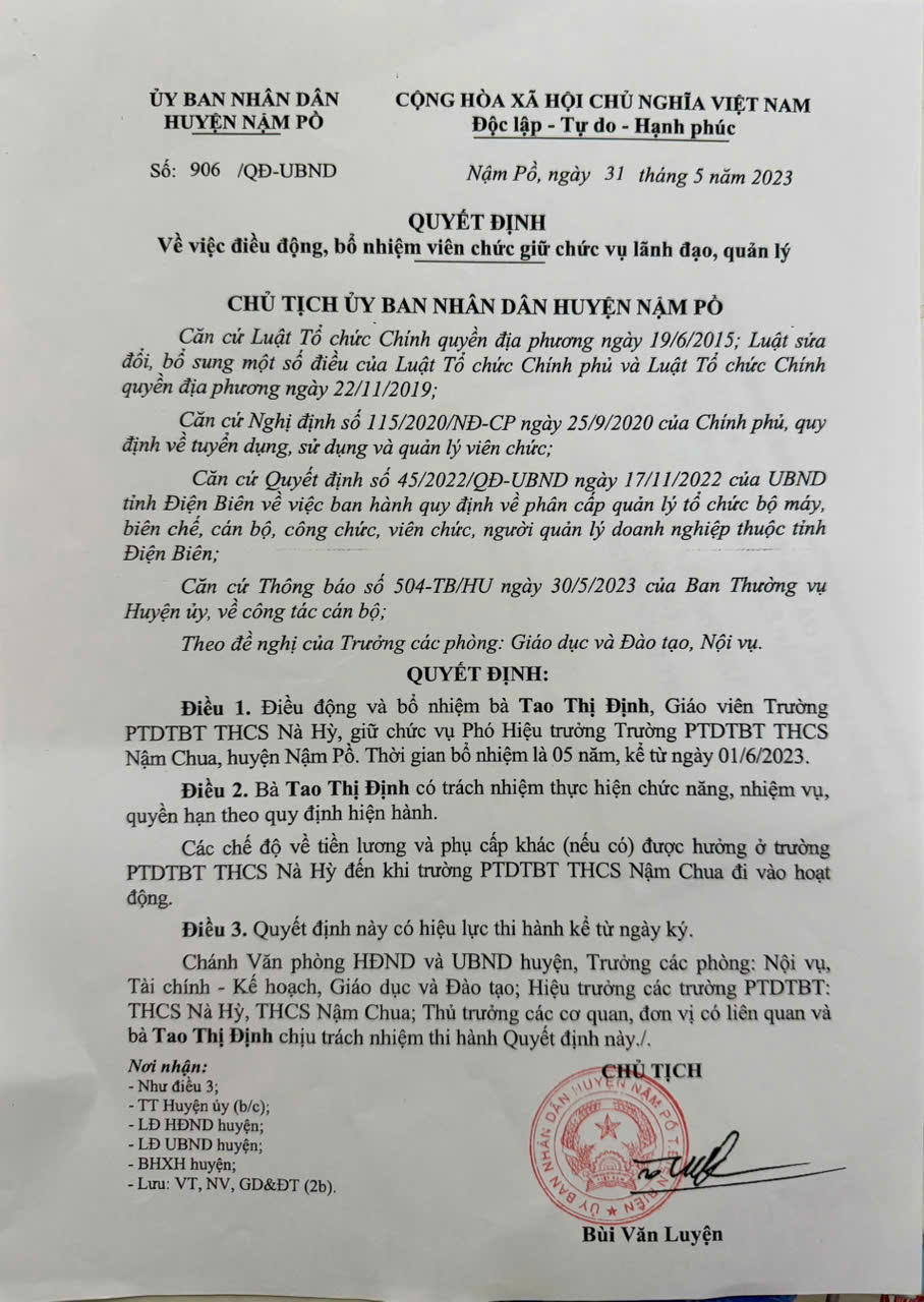 Quyết định điều động, bổ nhiệm viên chức